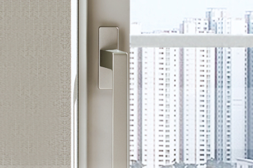 플랫한 창틀디자인으로 발코니와 실내를 연결합니다. 창짝 하부 틈새를 막아주는 플랫 디자인 마감재 양방향 핸들 적용